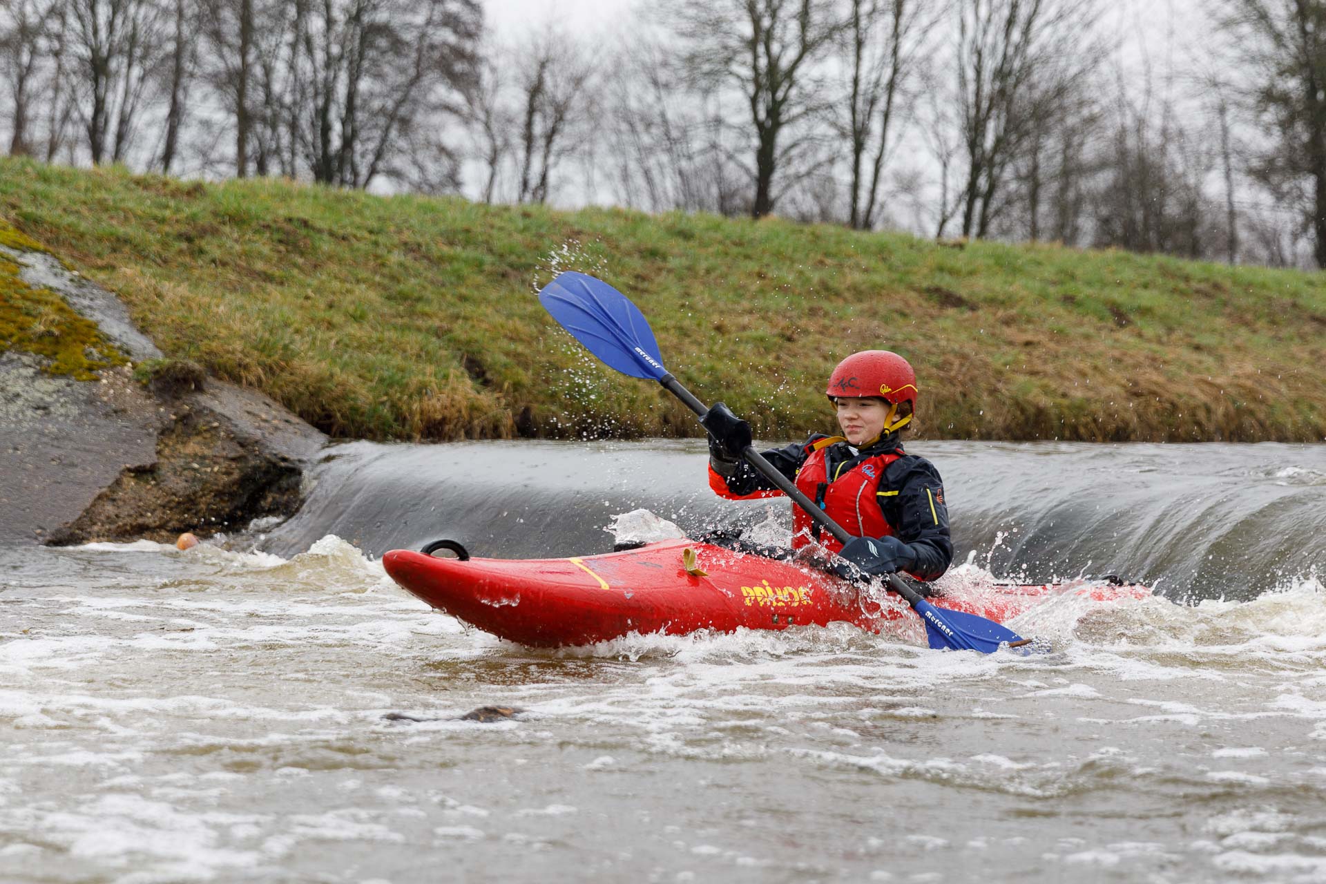 Vier AKC'ler ließen sich vom angekündigten Regenwettern nicht bremsen und machten sich auf den Weg nach Sassenberg, um von dort die Hessel bis zur Mündung in die Ems zu befahren. Auf dem Weg nach Sassenberg wurde an der Ausstiegsstelle in Einen-Müssingen ein PKW geparkt, sodass am Ziel trockene Sachen bereit lagen. Die Hessel ist stark begradigt, aber die kleinen Wehre und Schwälle in den Renaturierungen boten immer wieder Abwechselung. Der Regen nahm mit der Zeit zu und an einigen Stellen blies der Wind den Regen direkt ins Gesicht, aufgrund der angenehmen Temperaturen war es aber nicht kalt und immerhin hatte der Regen die Höflichkeit beim Umziehen eine Pause einzulegen.