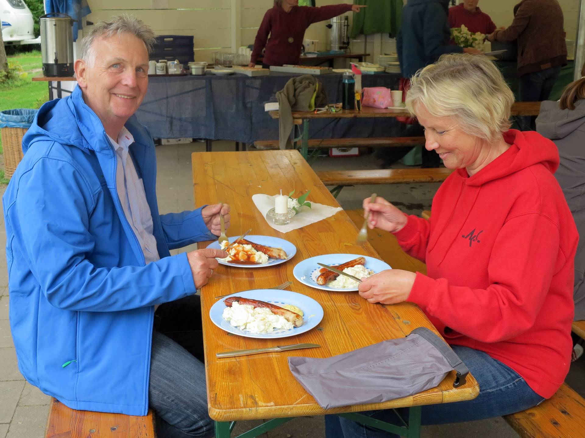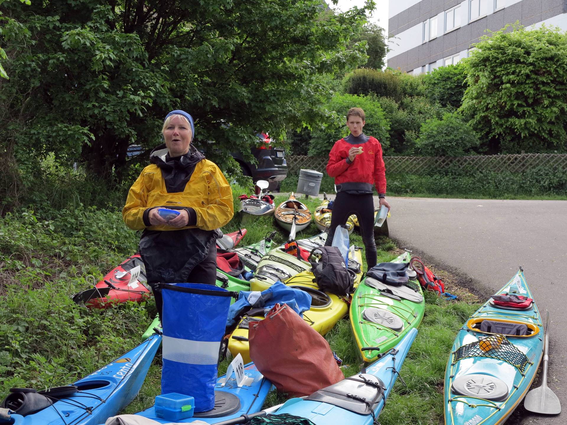 So auch beim Bronzeziel beim VKL Bayer Leverkusen, wo die AKCler eine kleine Essenspause einlegten, bevor es dann gemeinsam zum Silberziel beim WSC Bayer Dormagen ging. Hier endete die Wanderfahrt für die meisten AKCler, die sich nach der Anstrengung mit Grillwürstchen und Salat belohnten. Zwei Vereinsmitglieder hatten allerdings noch nicht genug und paddelten noch weitere 20 km bis zum Goldziel bei der Düsseldorfer Paddlergilde, wo es lecker Kaffee und Kuchen und Suppe gab.