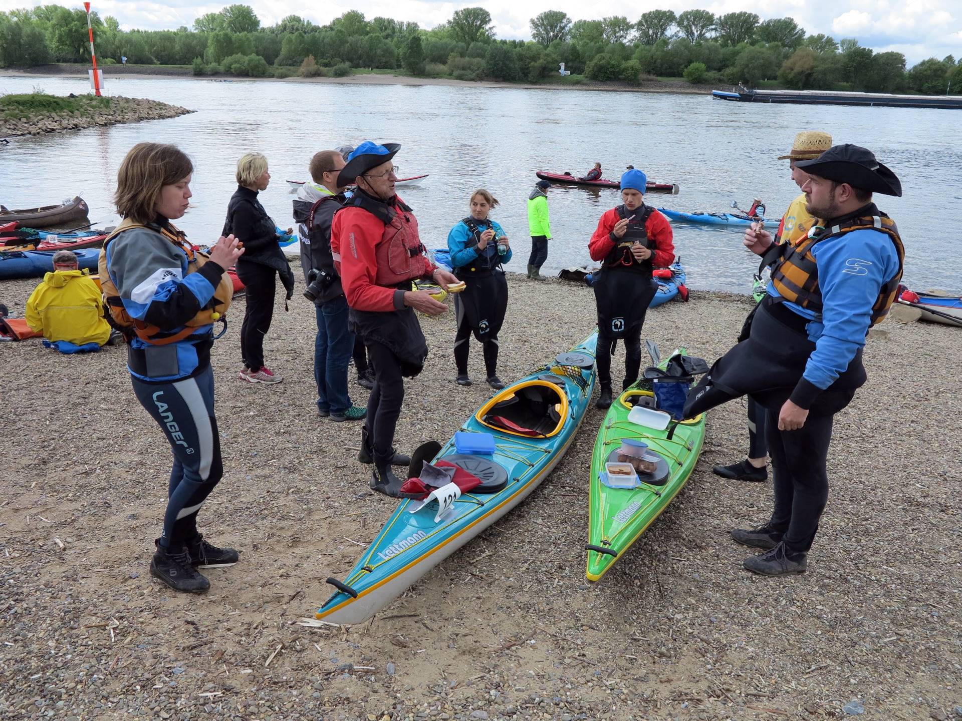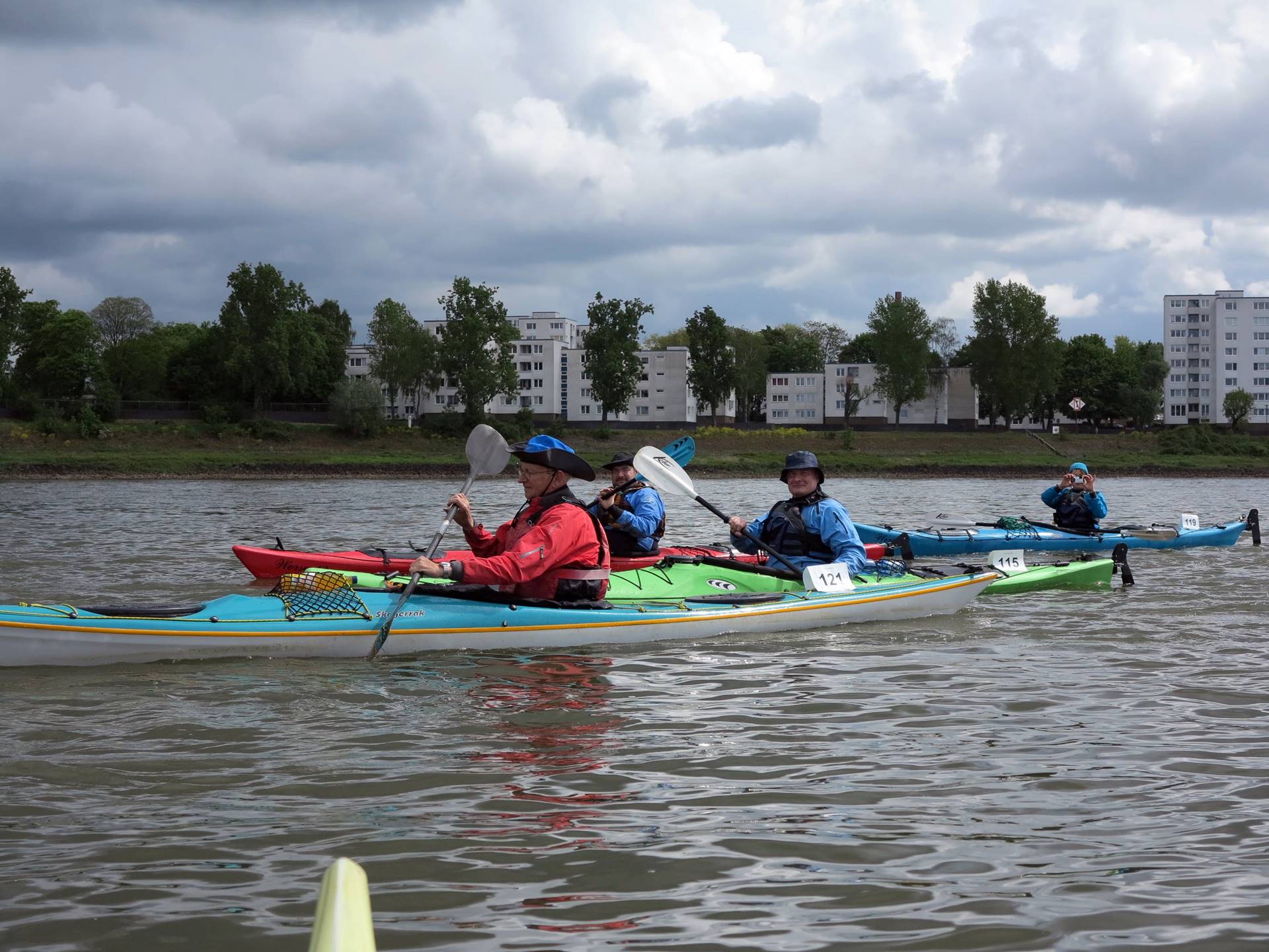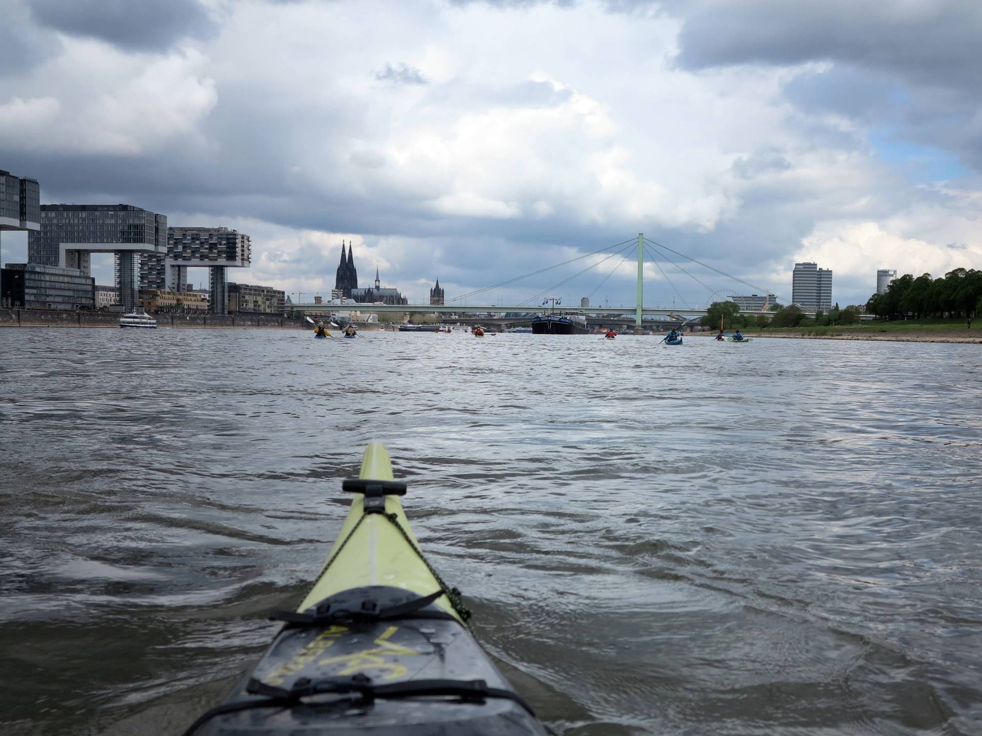Start war beim KC Zugvogel Köln, wo die AKCler zusammen mit über 300 anderen Paddlern auf den Rhein gingen. Zwischen 9 und 10 Uhr wurden nach und nach Kajaks, Canadier und auch SUPs zu Wasser gelassen, so dass bald ein buntes Treiben auf dem Rhein herrschte. Begleitboote von der DRK-Wasserwacht und Wasserschutzpolizei sorgten dabei für sichere Fahrt.