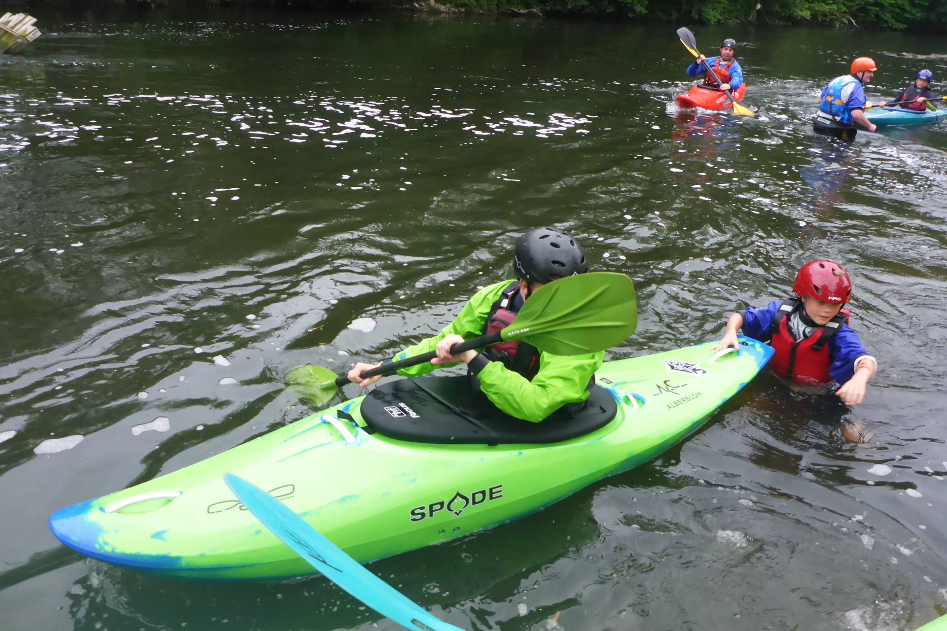 Nach Booteabladen und Kontrolle der Ausrüstung - u.a. Sitz von Schwimmweste und Helm - gab es erst einmal eine kurze theoretische Einführung vom 1. Vorsitzenden Alexander Walkowski, bevor dann nach und nach alle ihre Boote zu Wasser ließen.