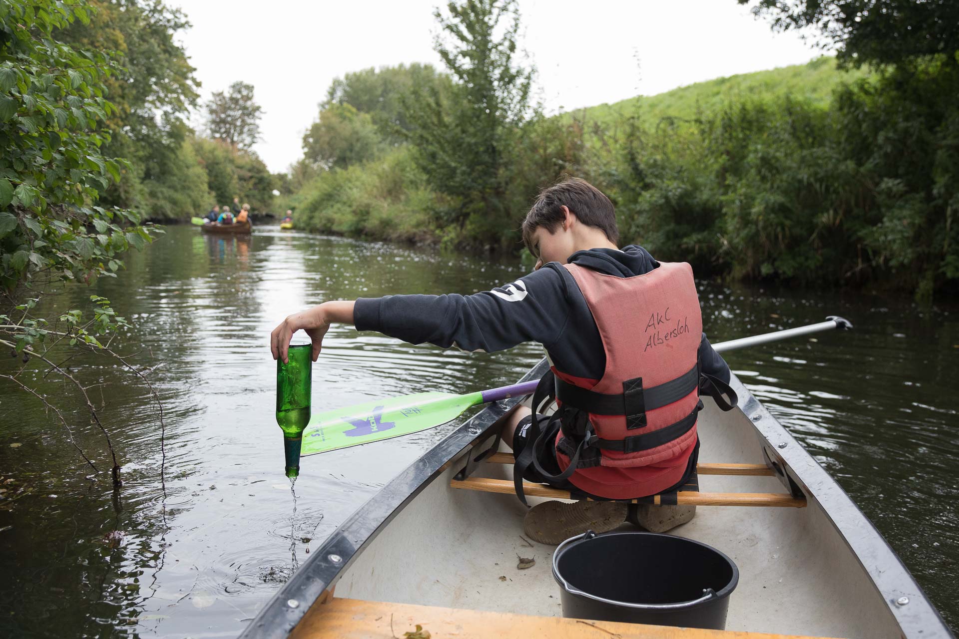 Während die Angelvereine dabei die Ufer von Unrat befreien, sind wir mit Kajaks und Canadiern auf dem Wasser unterwegs, um die Werse vom Müll zu befreien. Aufgrund des niedrigen Wasserstands konnten wir dieses Jahr nicht wie sonst von der Wersebrücke in der Bauernschaft Ahrenhorst starten, sondern sind direkt vom Bootshaus losgefahren. Vielleicht lag es auch daran, dass die Canadier diesmal nicht ganz so sehr mit Müll gefüllt waren, als wir kurz vor der ehemaligen Sohlgleite oberhalb der Emmerbach Mündung in Wolbeck unsere Müllsammeltour beendet haben. Denn auf dieser Strecke konnten wir nicht wie sonst durch Albersloh durchpaddeln, wo unter der Straßenbrücke oft der meiste und häufig auch kurioseste Müll zu finden war. Vielleicht ist aber auch das Bewusstsein für den Umweltschutz in der Bevölkerung gestiegen und es wird weniger Müll in Flüssen "entsorgt". Hoffen wir letzteres; ein Indiz dafür könnte sein, dass die Menge des gesammelten Mülls in den letzten Jahren kontinuierlich zurückgegangen ist.