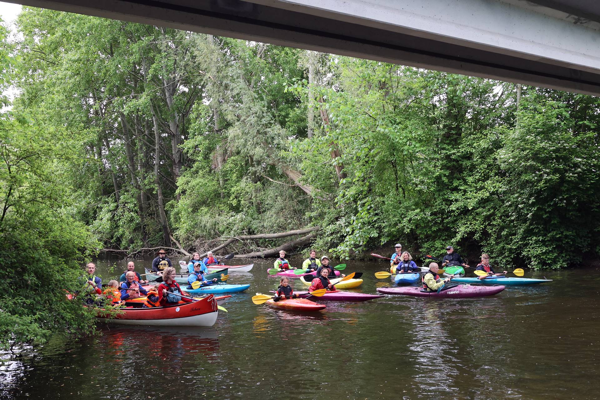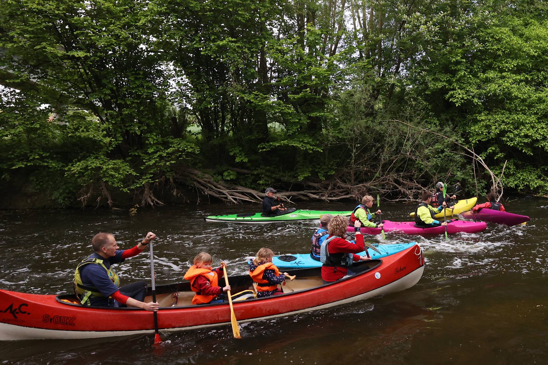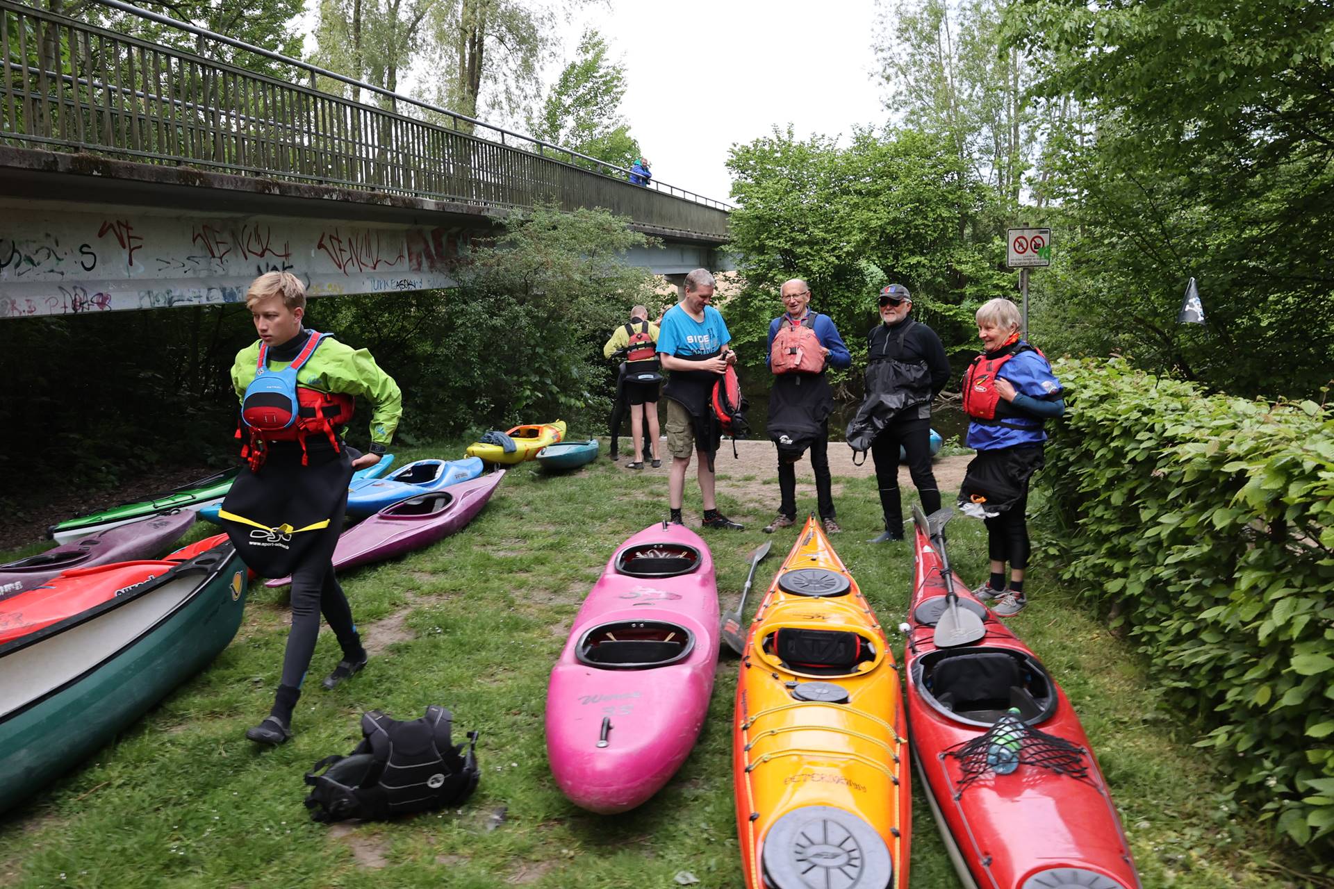 Natürlich gestaltet sich eine Fuchsjagd zu Wasser ein wenig anders als hoch zu Ross; dass dies aber nicht minder spannend sein muss, bewies sich am Sonntag mal wieder bei der alljährlichen Fuchsjagd des Albersloher Kanu Clubs. Denn schon kurz nach dem gemeinsamen Start wurde es im Getümmel auf dem Wasser etwas eng und so kamen sich im Eifer des Gefechts ein paar Kajaks in die Quere, wobei eine Teilnehmerin unfreiwillig kenterte. Sie wurde von den Kenter-Verursachern aber gleich wieder aus dem Wasser gefischt, so dass sie nicht aus dem Boot aussteigen musste, sondern die Jagd, wenn nun auch nass, aber ohne große Verzögerung fortsetzen konnte.