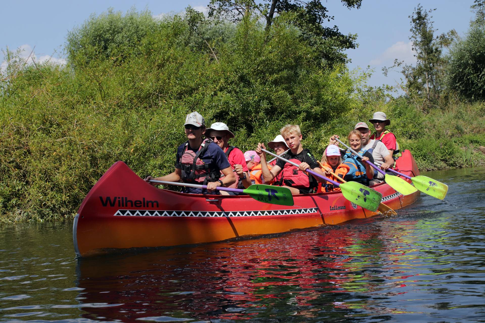 Nach einer Stärkungspause in Benninghausen - wo unsere kleinsten Paddlerinnen, die bis dahin fleißig mit ihren Kinderpaddeln mitgepaddelt hatten, ihre Fahrt beendeten - ging es weiter bis nach Hovestadt. Dort wurden wir vom "Begleitteam" und Bootsanhänger schon erwartet, so dass der "Wilhelm" mit vereinten Kräften flott aufgeladen und die Autos vom Start abgeholt werden konnten.