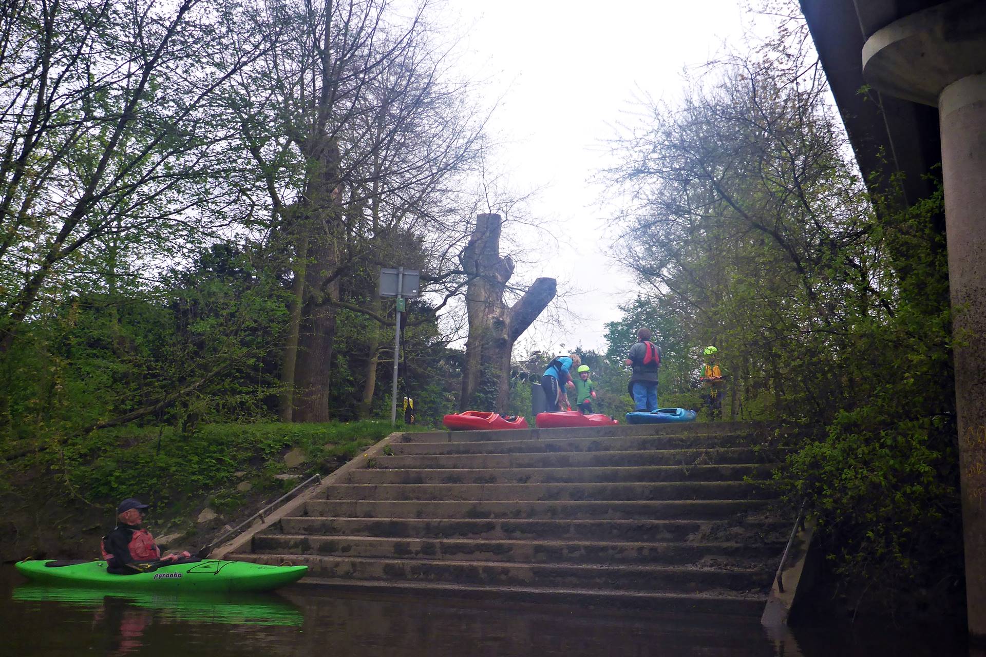 Das Wehr in Wolbeck war für alle fahrbar, so dass später nur noch an der Pleistermühle eine Umtrage für alle anstand. Die beiden jüngsten Teilnehmerinnen (5 und 6 Jahre) beendeten mit ihren Eltern die Fahrt in Angelmodde.