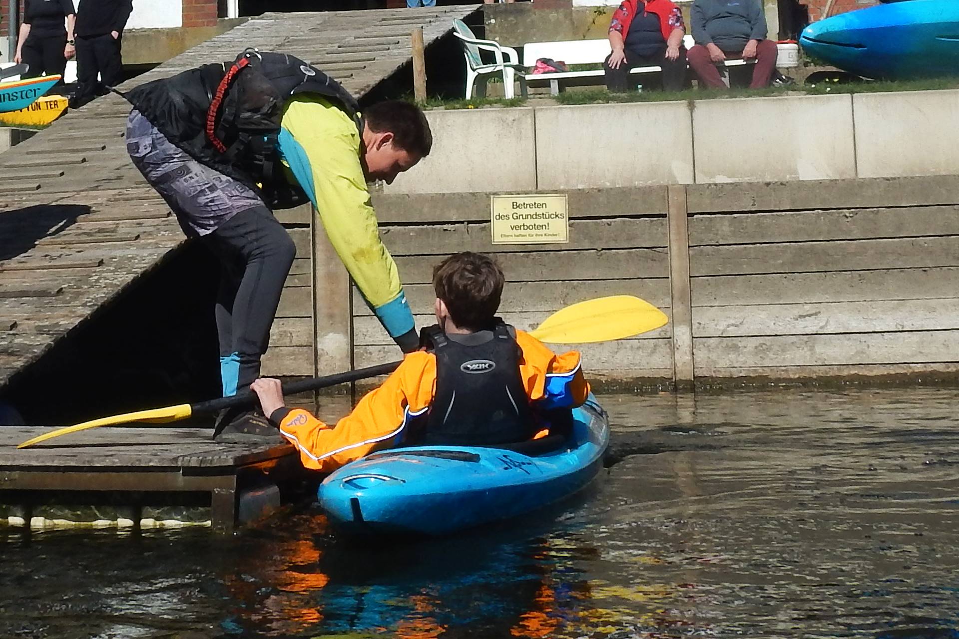 Vorbei an Wolbeck, wo das Wehr mit etwas Bodenkontakt gefahren werden konnte, Angelmodde und dem Schwimmbad Stapelskotten erreichte man schließlich das erste Etappenziel beim Bootshaus der Paddelabteilung der TG Münster. Hier wurden die Paddler*innen mit leckeren, frisch gegrillten Bratwürstchen im Brötchen sowie Getränken verwöhnt.