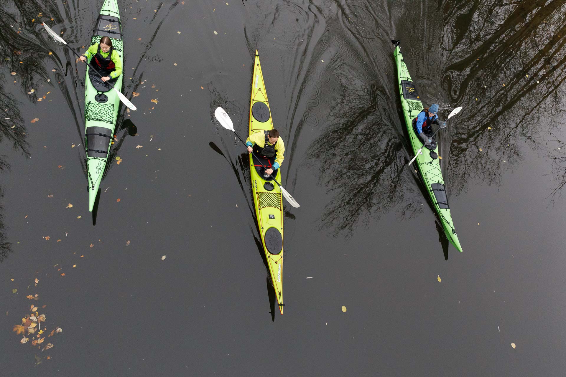 Am Sonntag trafen sich die neun AKC`ler um 9:30 am Bootshaus. Die Seekayaks wurden ausgelagert und die Fußstützen und Steueranlagen eingestellt. Das dauerte ein Weilchen, wenn man das zuvor noch nie gemacht hat; am längsten hat aber die Reparatur eines Rückengurtes gedauert. Nach kurzer Fahrt ging es dann in Stapelkotten auf die Werse. Anfänglich war es für die eine oder den anderen etwas kippelig, aber nach einigen Metern hatten sich alle an die Boote gewöhnt und so ging die Fahrt zu nächst Fluss auf Richtung Angelmodde. An der Fußgängerbrücke wurde eine kurze Picknick-Pause im Boot eingelegt bevor der Rückweg angetreten wurde. Am Ziel angelangt waren alle froh die Paddelklamotten gegen trocken warme Kleidung zu tauschen und aus dem grauen November Nieselregen im trocken Auto Zuflucht zu finden.