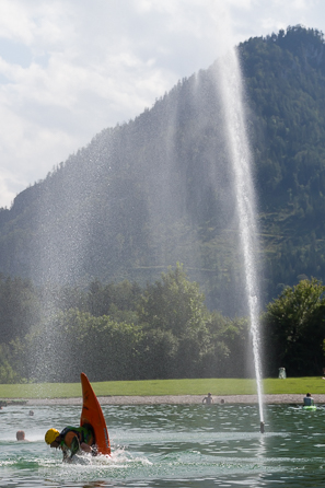 Die Nachmittage und Abende verbrachten die Kanuten zusammen mit den anderen Teilnehmern der Wildwasserwoche auf einem Campingplatz in Mooslandl. Besonders großer Beliebtheit erfreute sich der angrezende Badesee, der bei den sommerlichen Temperaturen eine angenehme Abkühlung bot.