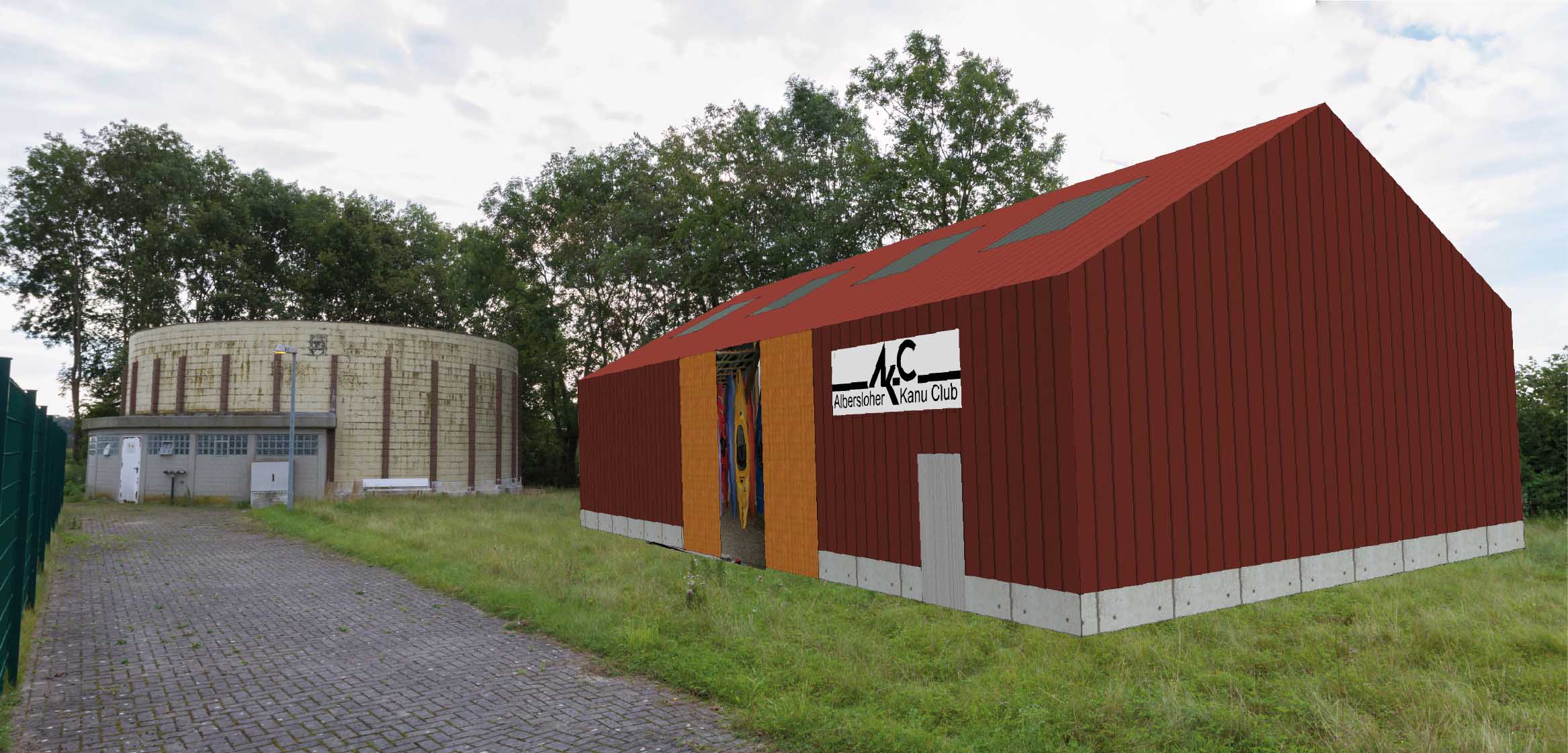Geplant ist der Bau einer Halle mit einer Grundfläche von 10x20m. Hierin sollen die Umkleiden mit einem minimalen Sanitärbereich untergebracht und die Ausrüstung gelagert werden. Die Einrichtung eines Clubraums ist nicht vorgesehen.