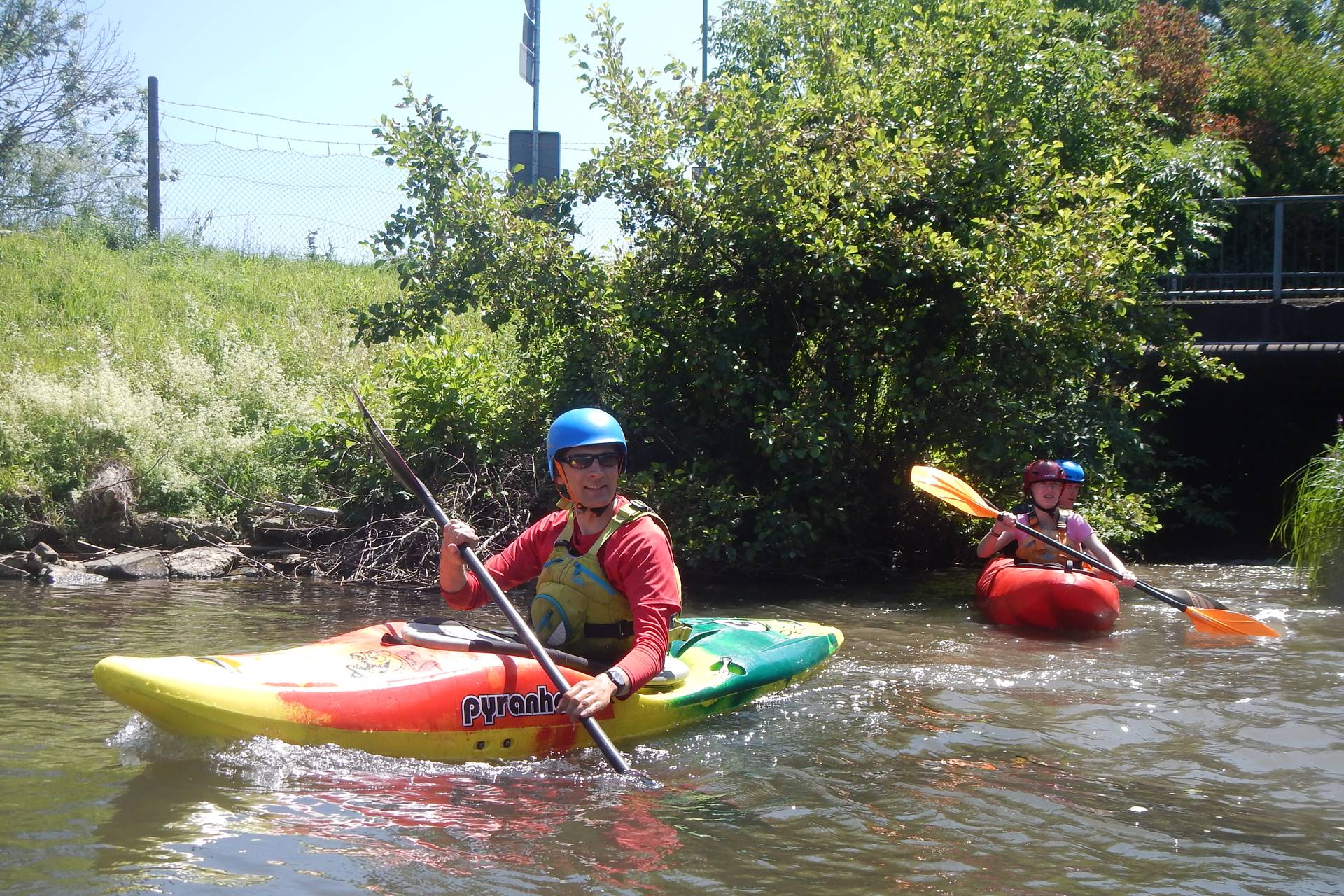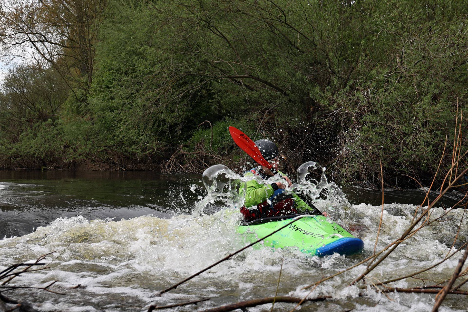 Guter Wasserstand unterstützte durch Strömung ganz angenehm beim Paddeln und ermöglichte ein paar Trainingsheinheiten an den zwei Spielstellen, wo kürzlich wohl viel Gebüsch weggeschnitten wurde und damit die Stelle wieder schön offen fürs Üben war.