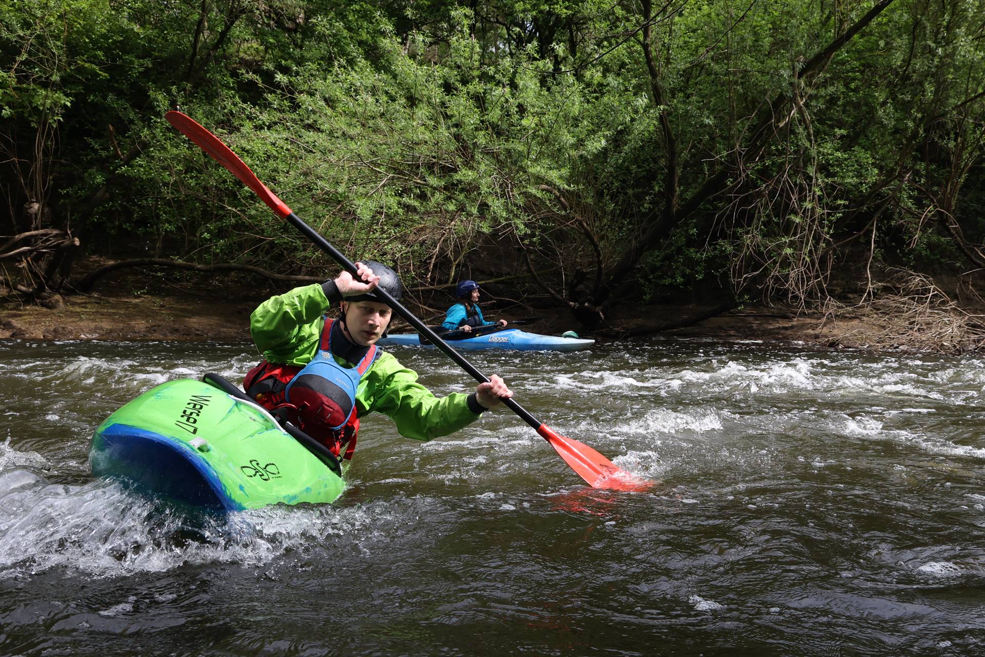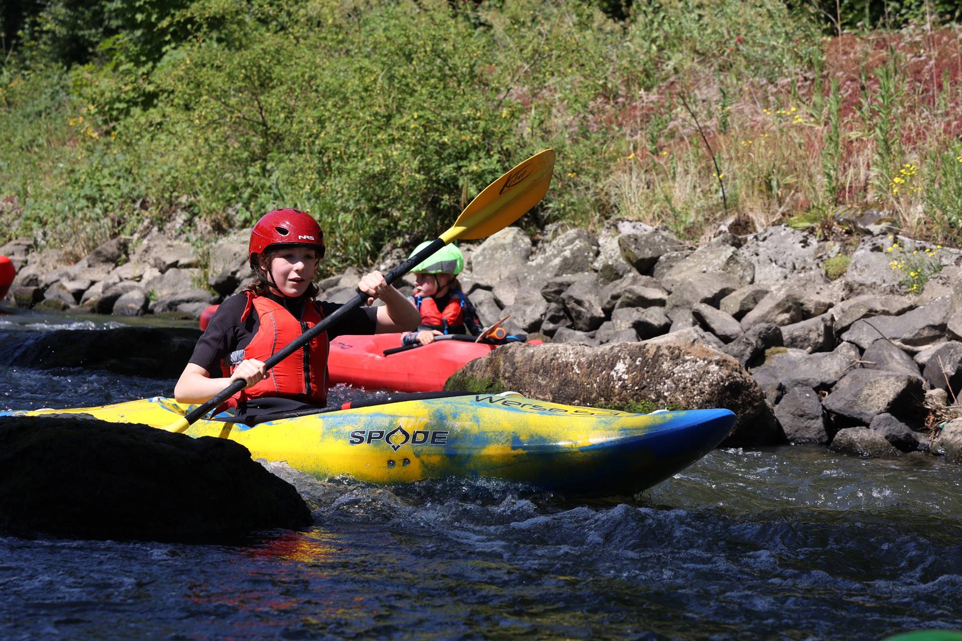 Und dann wurde fleißig geübt: Welle surfen, Traversieren, Kehrwasser fahren und einigen gelang sogar die erste Rolle im Wildwasser.