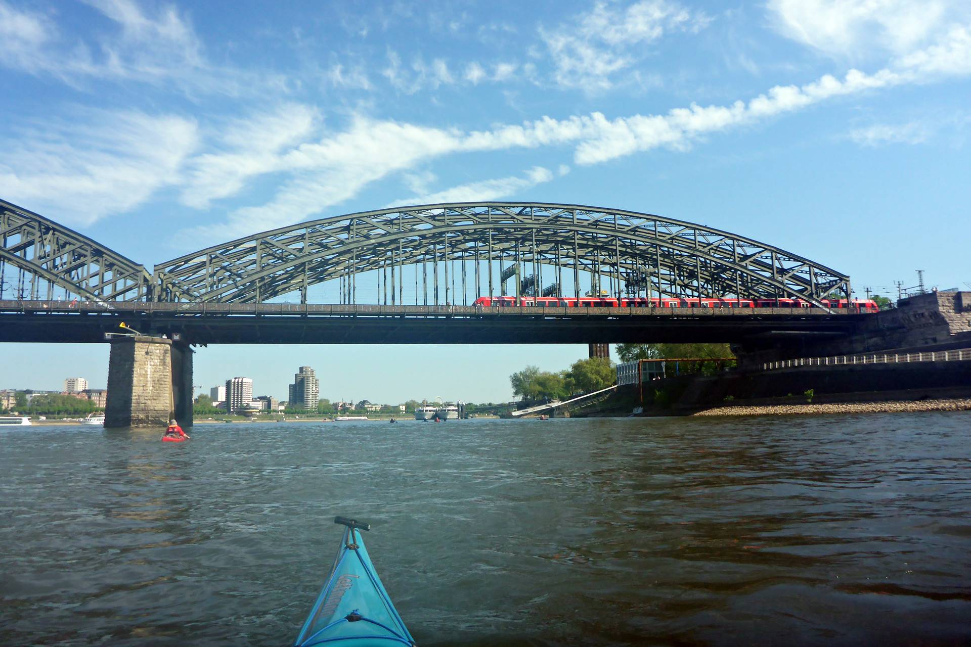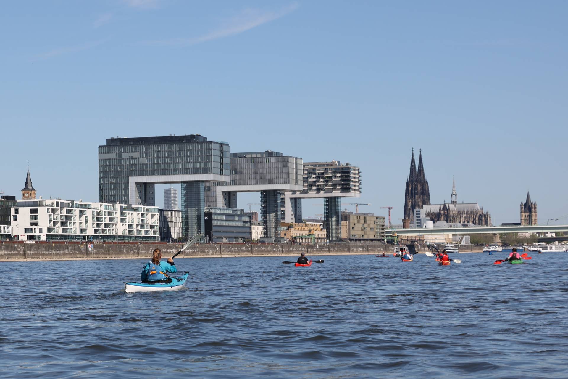 Die Kanu-Rallye auf dem Rhein ist immer ein ganz besonderes Erlebnis, paddelt man doch mitten durch Köln am Schokoladenmuseum und Dom vorbei.