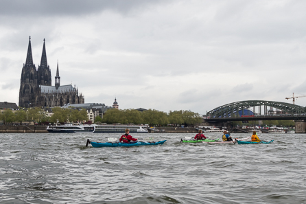 Der vergangene Sonntag stand in NRW ganz im Zeichen des Kanusports. In diesem Jahr begaben sich die Kanuten in Nordrhein-Westfalen im Rahmen der Kanu Rallye NRW seit vier Jahren wieder auf den größten Strom des Landes, den Rhein. Mit dem Start in Köln und dem Gold-Ziel in Düsseldorf verband sie die beiden attraktiven NRW-Metropolen am Rhein. Auch vierzehn Kanuten aus Albersloh trafen sich am Sonntag schon früh morgens um nach Köln zu fahren und an der 44. Kanu Rallye NRW teilzunehmen. Nach Ankunft in Köln luden die Sportler ihre Boote ab und brachten ihre Autos zum Silber-Ziel, dem Bootshaus des Monheimer Kanu-Clubs. Kurz nachdem sie und die anderen 400 Teilnehmer in die Boote gestiegen waren, wartete auch schon das Highlight der Rallye auf sie: Die Vorbeifahrt an der markanten Stadtkulisse Kölns mit dem Dom als Krönung.