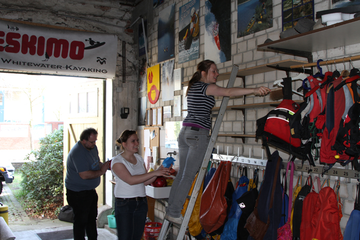 Am Samstag, den 2.04.2011, trafen sich die Albersloher Kanuten um ihr Bootshaus für die anstehende Sommersaison fit zu machen. Da das Bootshaus in den Wintermonaten nicht so intensiv benutzt wird, hatten sich einige Spinnweben und eine Menge Staub angesammelt. Für die Umkleide-Kabinen und die Bootshalle stand somit der Frühjahrsputz an. Des Weiteren wurde der Schaukasten an der Wolbecker Straße repariert. Der Zahn der Zeit hatte an den Scharnieren genagt. Da half auch kein Ölkännchen mehr, sondern nur der Ersatz durch neue Scharniere. Ebenso wurden die Boote einem Sicherheitscheck unterzogen und geprüft ob die Auftriebskörper dicht sind und die weitere Bootsausrüstung intakt ist. Am Abend waren sich die AKC’ler einig, dass nun die Sommersaison starten kann und jeder Paddelbegeisterte im Bootshaus begrüßt werden kann. Interessierte sind herzlich eingeladen am Training (freitags 18:00 – 19:30) teilzunehmen.
