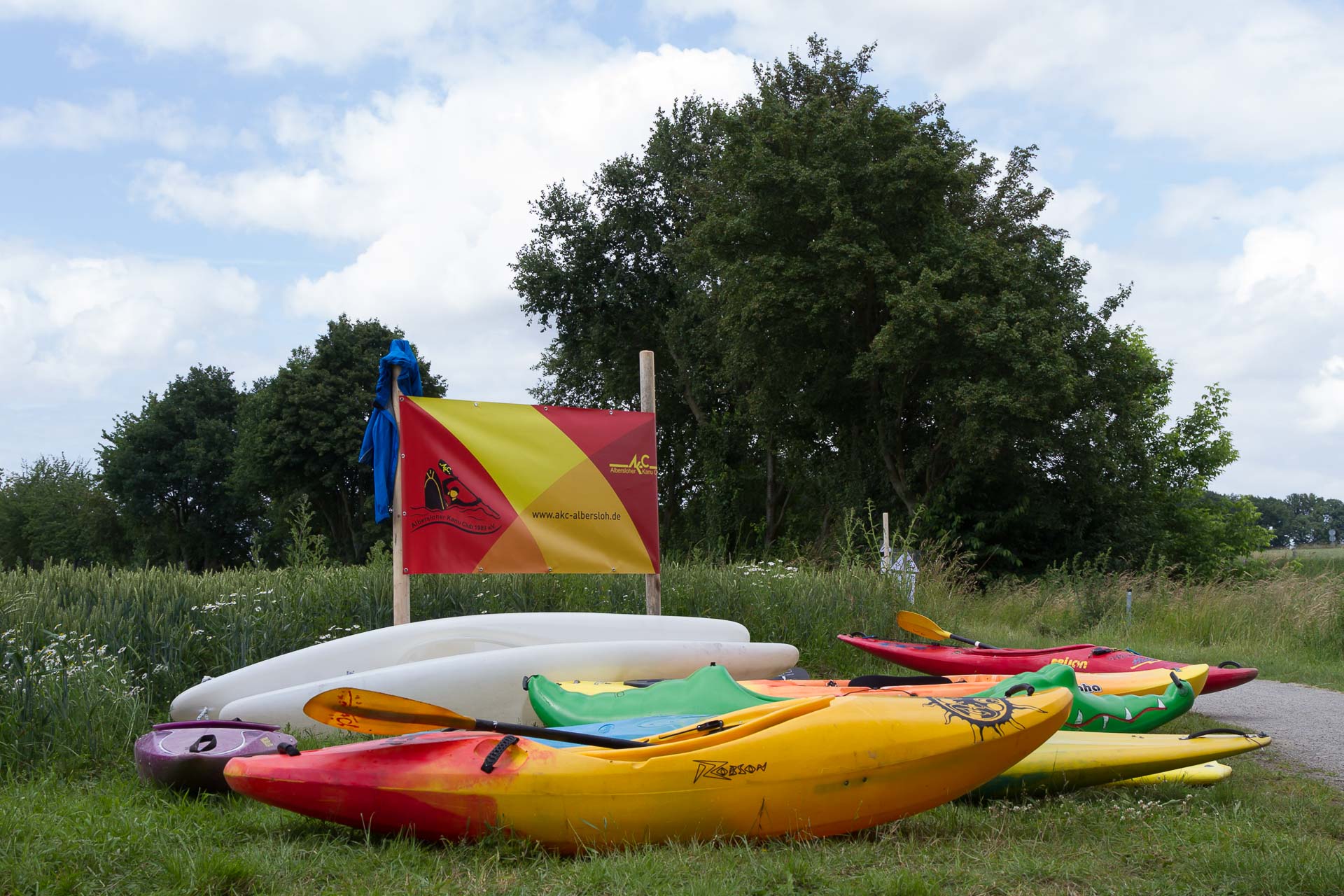 Wieviele Boote hat der Verein überhaupt? Wie werden diese gelagert? Was werden für Vereins-Aktivitäten angeboten? Und wie ist es überhaupt zu paddeln? Diese und viele weitere Fragen konnten Neugierige bei den Kanuten stellen und sich dabei das Bootshaus anschauen. Wer mutig war, hatte die Möglichkeit, den Sport einmal selber auszuprobieren. Hierzu hatten die albersloher Kanuten ihre Boote an ihrem Anleger am Wersewanderweg positioniert und zeigten allen Interessierten, wie das Paddeln funktioniert. Wer dann erschöpft und ein wenig nass aus den Booten stieg, konnte sich anschließend in den Umkleiden des AKC trocken legen und dann an dem umfangreichen Kuchenbuffet stärken.