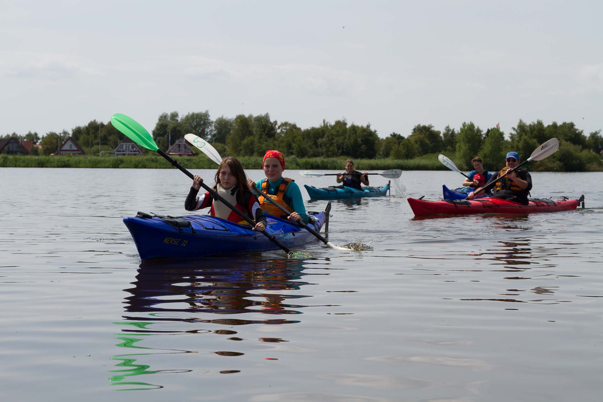 Um nicht gleich am ersten Tag auf dem offenen Meer zu paddeln, stand für die albersloher Kanuten am Donnerstag zunächst eine Fahrt auf dem Binnensee „Großes Meer“ auf dem Programm. Hier konnten sich die Sportler damit vertraut machen, wie sich die Booten bei Wellen und Wind verhielten und waren somit optimal für die bevorstehenden Überfahrten zu den Inseln gerüstet.