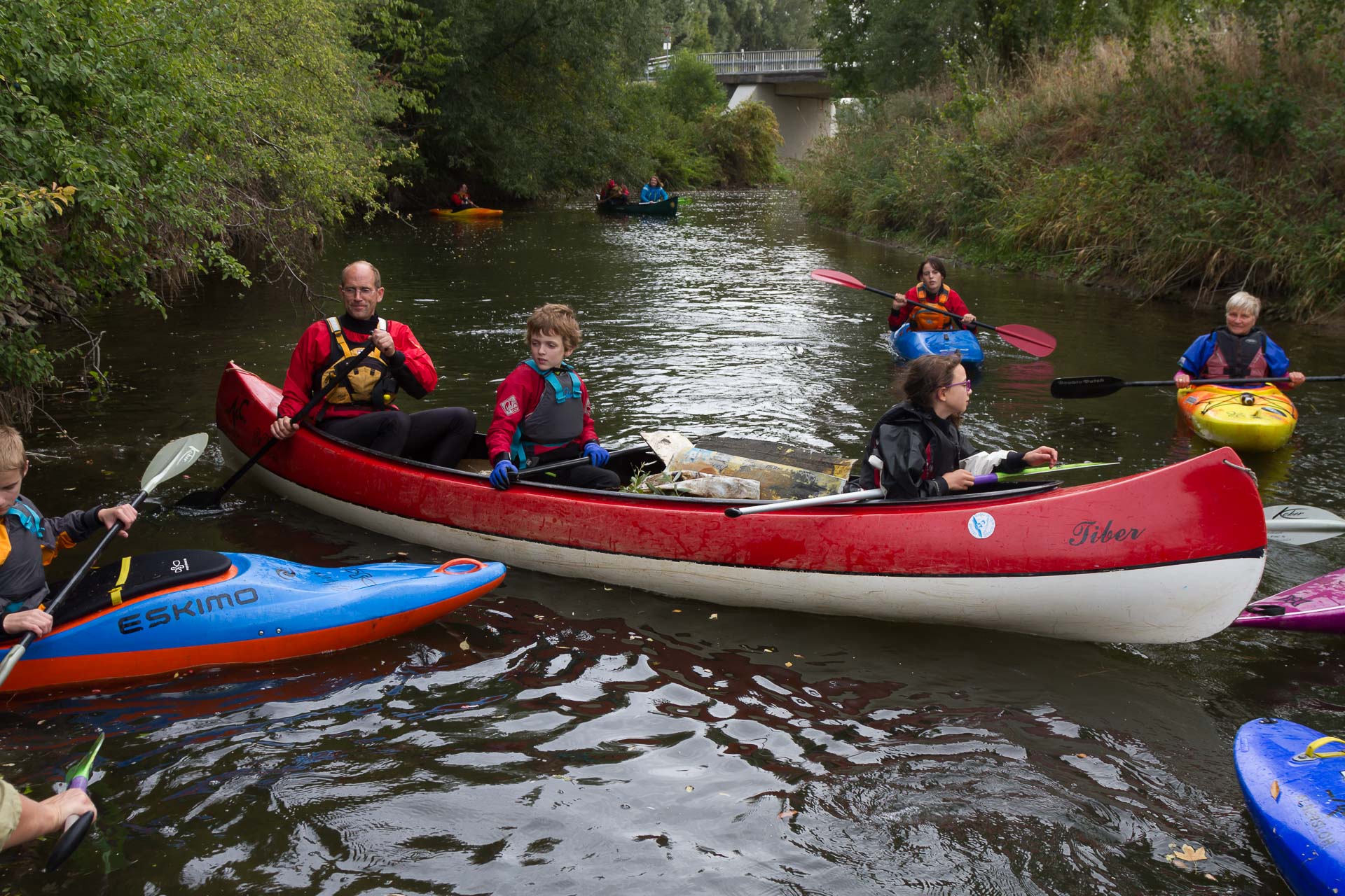 Mit diesem Ziel trafen sich am Samstagmorgen, den 15.09.2018, 19 Kanuten des Kanu Clubs an ihrem Bootshaus. Die Kajaks und auch zwei Canadier, die zum Transport des Unrats dienten, waren schnell zum Anleger getragen. In diesem Jahr mussten die Kanuten ihre Aktion am eigenen Anleger unterhalb des Dorfes beginnen, da aufgrund des geringen Wasserstandes eine Befahrung der Werse von der Wersebrücke in der Bauernschaft Ahrenhorst nicht möglich war. Die Fischtreppe an den Sendenmasten kurz vor der Brücke Berl, musste umtragen werden. Zum Glück war auf dem Stück bishier hin noch nicht so viel Müll gefunden worden, sodass die Canadier mit sammt dem gesammelten Müll gut umgetragen werden konnten. Der Ausstieg war kurz vor der ehemaligen Sohlgleite oberhalb der Emmerbach Mündung. Dort wurden die Boote mit dem Mll auf den Anhänger gelanden und dann ging es nach Drensteinfurt, wo der Abfall in einem bereitgestellten Container entsorgt wurde. Anschließend trafen sich die Kanuten und Angler der drei Vereine bei einem leckeren Grillbufett in albersloher Bootshaus.
