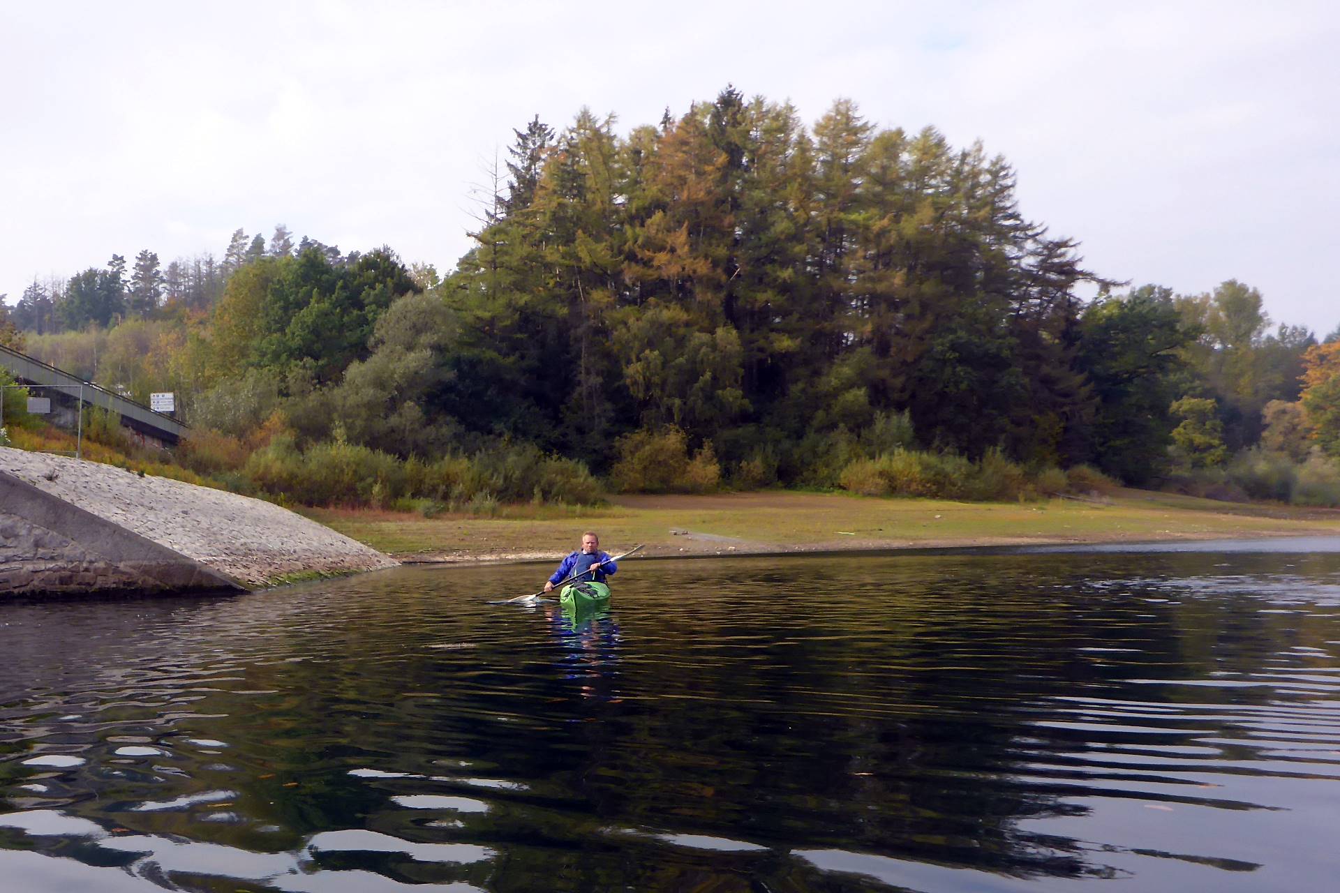 Andererseits liegt der Sorpesee sehr idyllisch, die Ufer sind von Bäumen gesäumt, die momentan herbstlich bunt leuchten, und das Wasser ist glasklar, so dass man in den regelmäßigen Ausläufern oft bis auf den Boden schauen konnte. Wasservögel gab es auch genügend und vor der Staumauer auch Wind und ein paar Wellen.