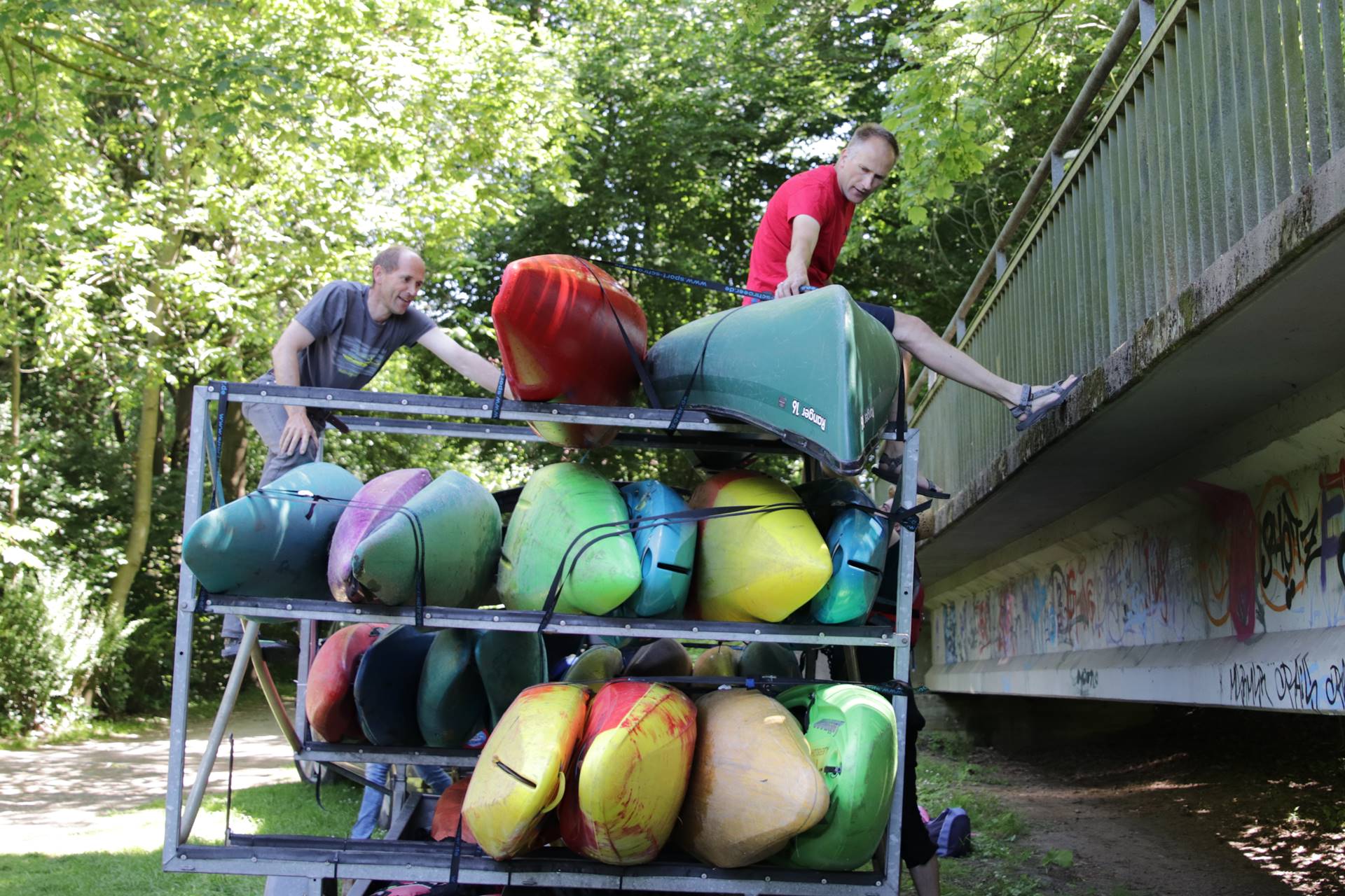 Die Teilnehmerzahl, die unsere Fuchsjagd am letzten Sonntag (13.6.2021) aufweisen konnte, liegt sicherlich bei einem Vereins-Rekordhoch! Insgesamt 30 Paddlerinnen und Paddler verschiedenster Altersstufen - vom Kleinkind bis zum Senior - tummelten sich auf der Werse und versuchten, den "Fuchs" Stephan Walkowski zu fangen und dabei gleichzeitig möglichst viele der 300 Stofffähnchen zu ergattern, die der Fuchs tags zuvor mit seinem Fuchsgehilfen Franz-Peter Walkowski für drei verschiedene Alterstufen im Jagdgebiet von Angelmodde bis Stapelskotten aufgehangen hatte.