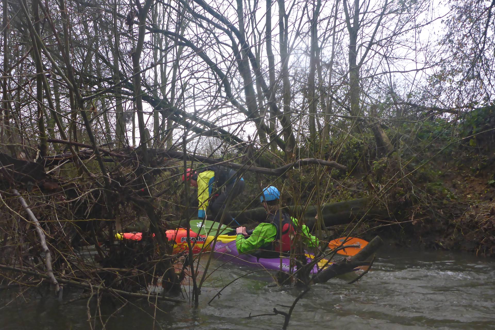 Am letzten Wochenende war der Wasserstand mit 1,13m optimal: Wasser genug, um über viele querliegende Baumstämme einfach drüberpaddeln zu können, aber auch nicht zu viel für nicht zu viel Rücklauf bei den Wehren.