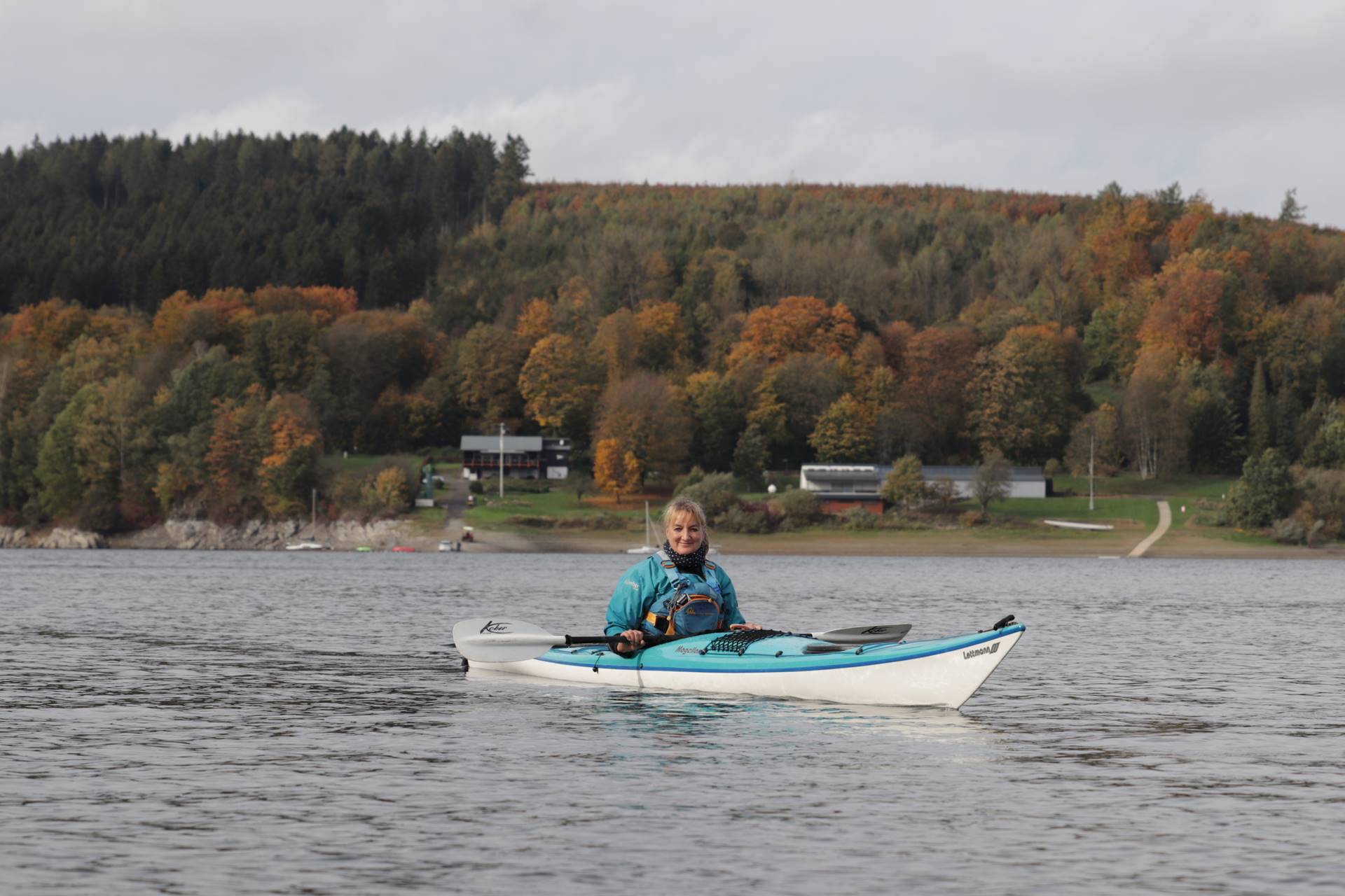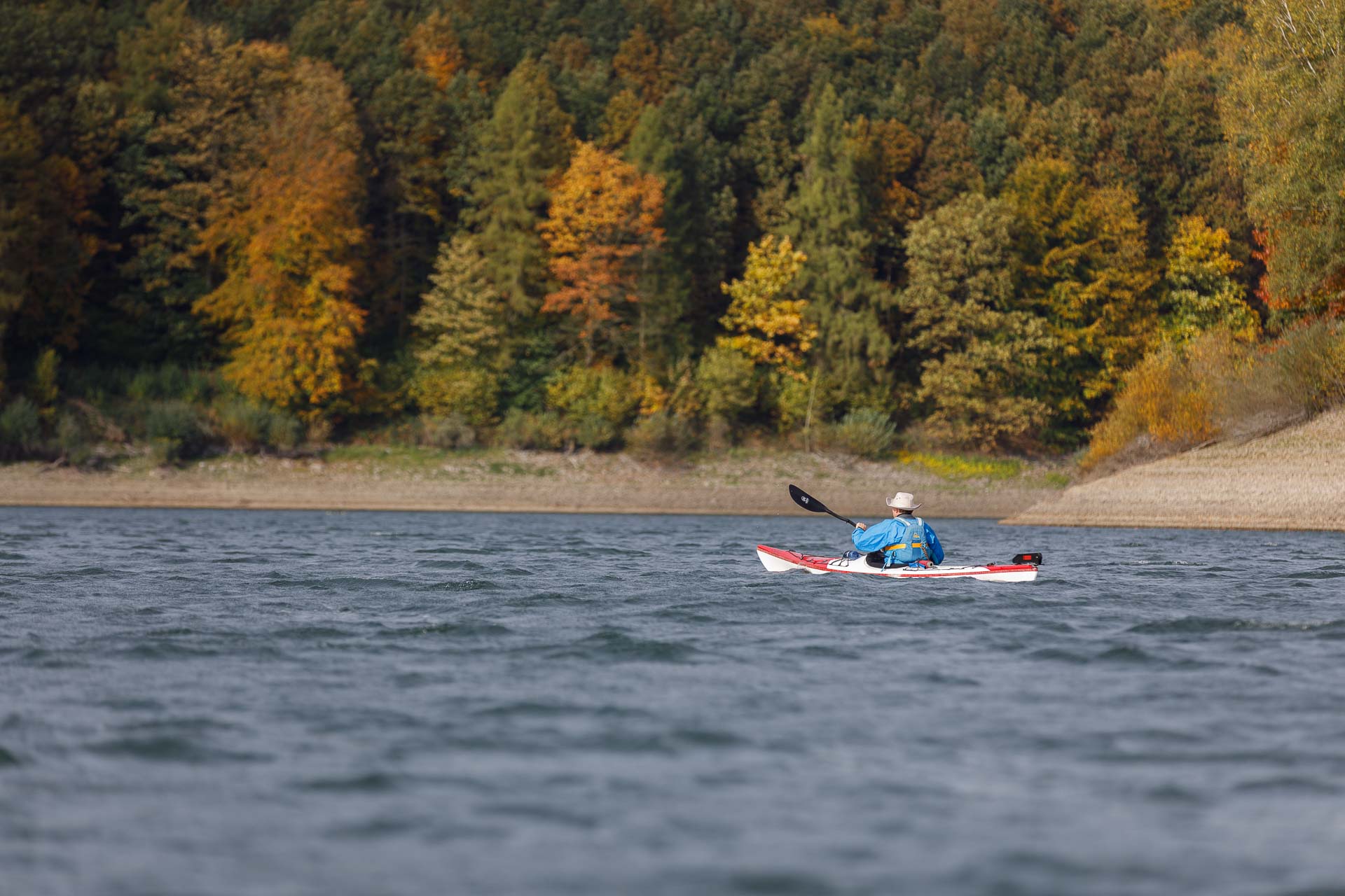 Zur gestrigen Sonntagstour ging es auf den Hennesee. Die Anfahrt war etwas länger und die Runde, die wir zusammen mit acht befreundeten Paddlern vom KC Fröndenberg auf der Henneseetalsperre machen konnten, war angesichts der Seegröße zugegebenermaßen nicht besonders lang, aber dafür konnten wir uns an der wunderschön bunten Uferkulisse mit farbenfroh gefärbtem Herbstlaub erfreuen, welches hin un wieder im Sonnenlicht sogar noch mehr erstrahlte.
