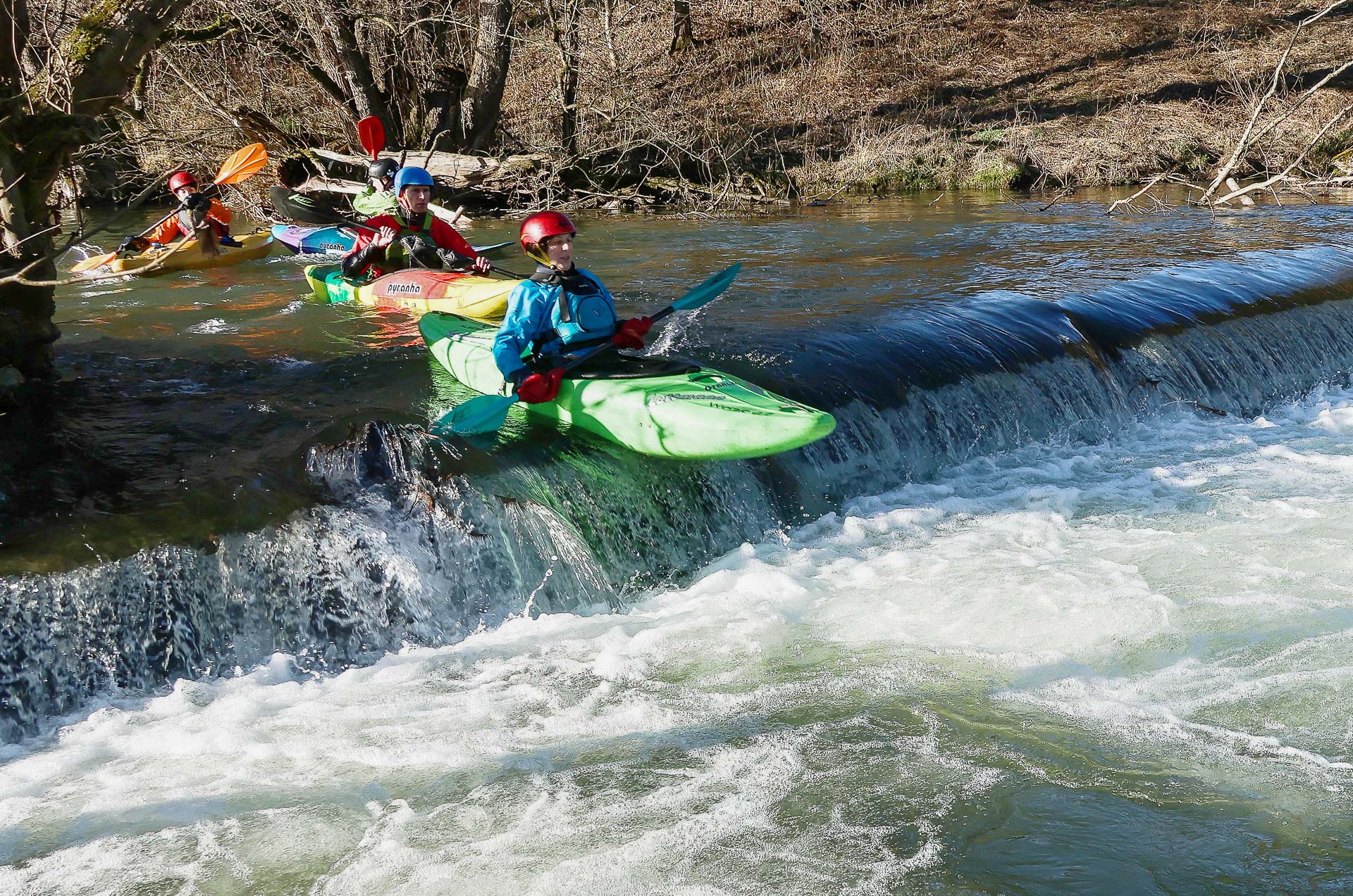 Dank guter 1zu1-Betreuung oder Mitnahme im 2er-Kajak sowie sicherem Scouten und präziser Anleitungen beim Fahren der Wehre durch erfahrene Übungsleiter wurde dies bei eher niedrigem Wasserstand ein nur wenig nasses und dafür umso schöneres neues Erlebnis für die Drei. Aber auch die anderen Vereinsmitglieder genossen die Tour bei schönstem Sonnenschein.
